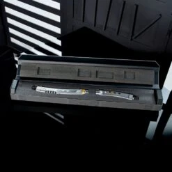 Feel at one with the Force with this pair of Ahoska Tano Legacy Lightsabers. Ahsoka, former Padawan to Anakin Skywalker and a veteran in the battle of the Clone Wars, is known for her strong leadership and skill. This detailed set of reproductions features a Single-Bladed Lightsaber and Shoto Saber, with their distinctive curved hilts and white blades, and includes impact sensors and unique impact sound effects.