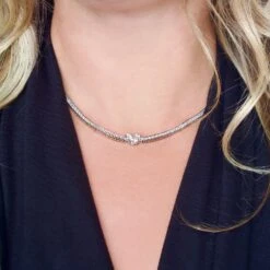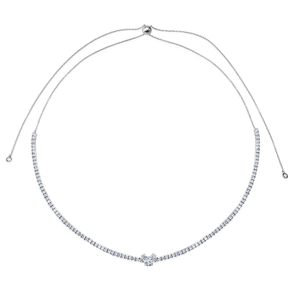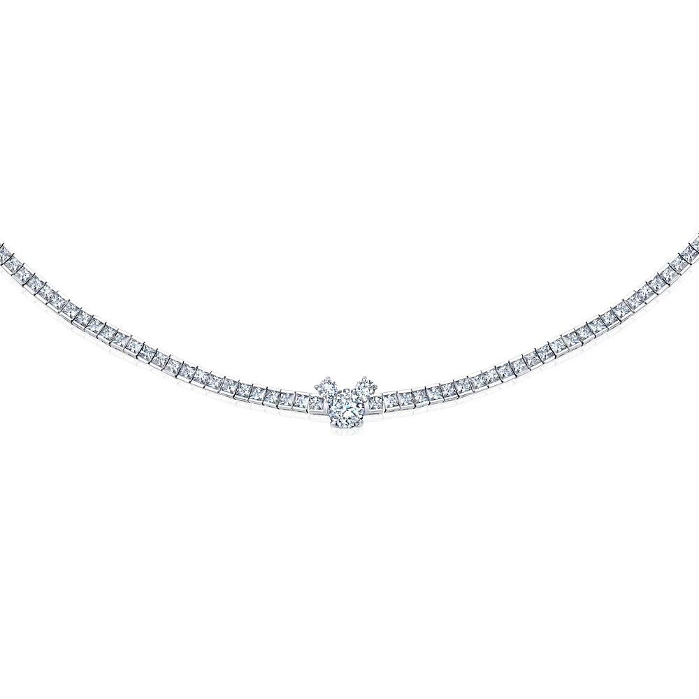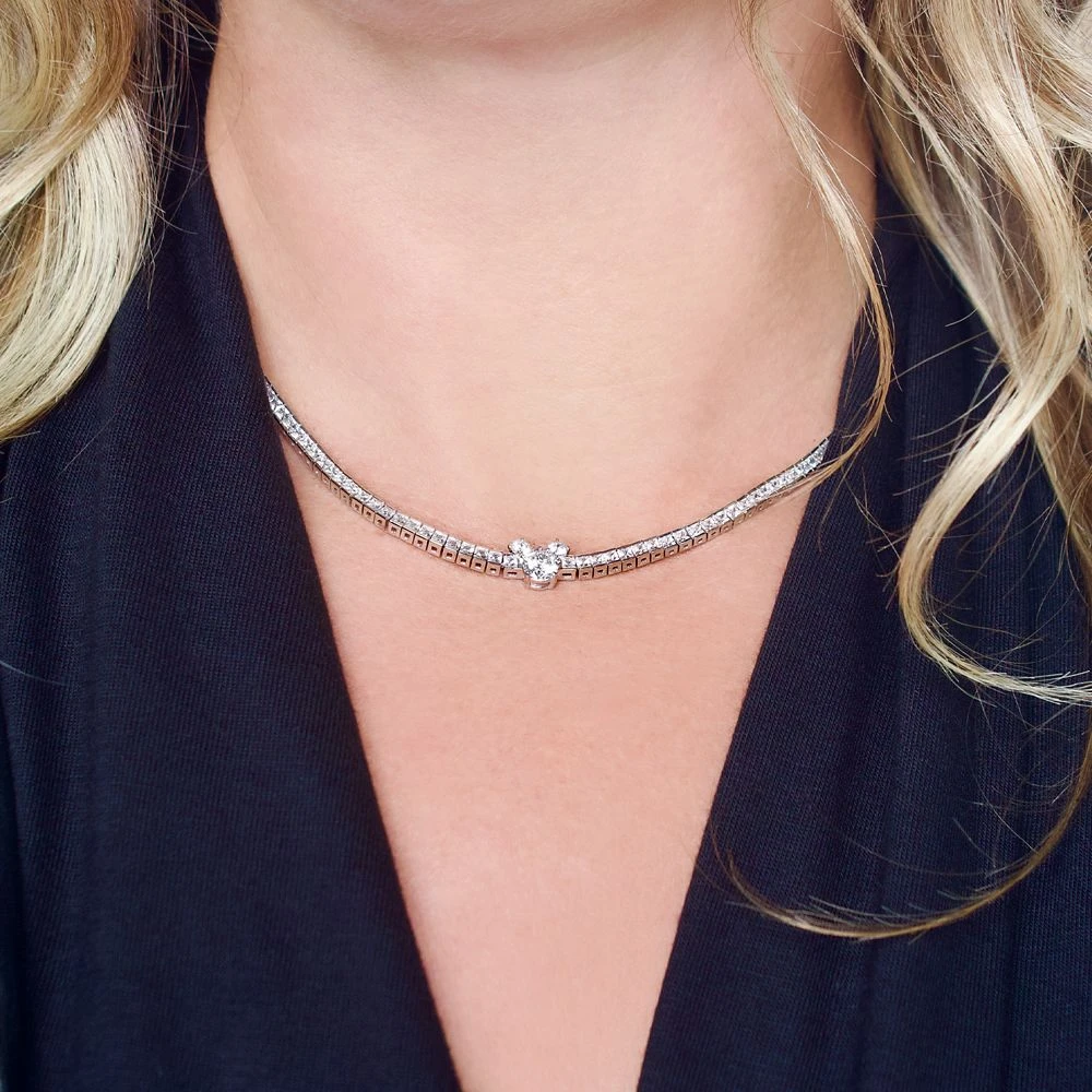 Glamor, anyone? This Mickey Mouse icon tennis necklace by CRISLU adds a touch of sparkling elegance and whimsy to any look. With dazzling cubic zirconia stones, a pure platinum finish and an adjustable bolo chain that allows you to wear it the way you wish, there’s only one possible score to give this sterling silver necklace: LOVE–LOVE.