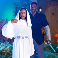 Get into character as you prepare for your next Star Wars adventure. Imagine yourself as Princess Leia in this detailed replica of her iconic dress. With its draped fabric, attached hood, and simulated leather belt you’ll feel like royalty on your epic Star Wars mission.
