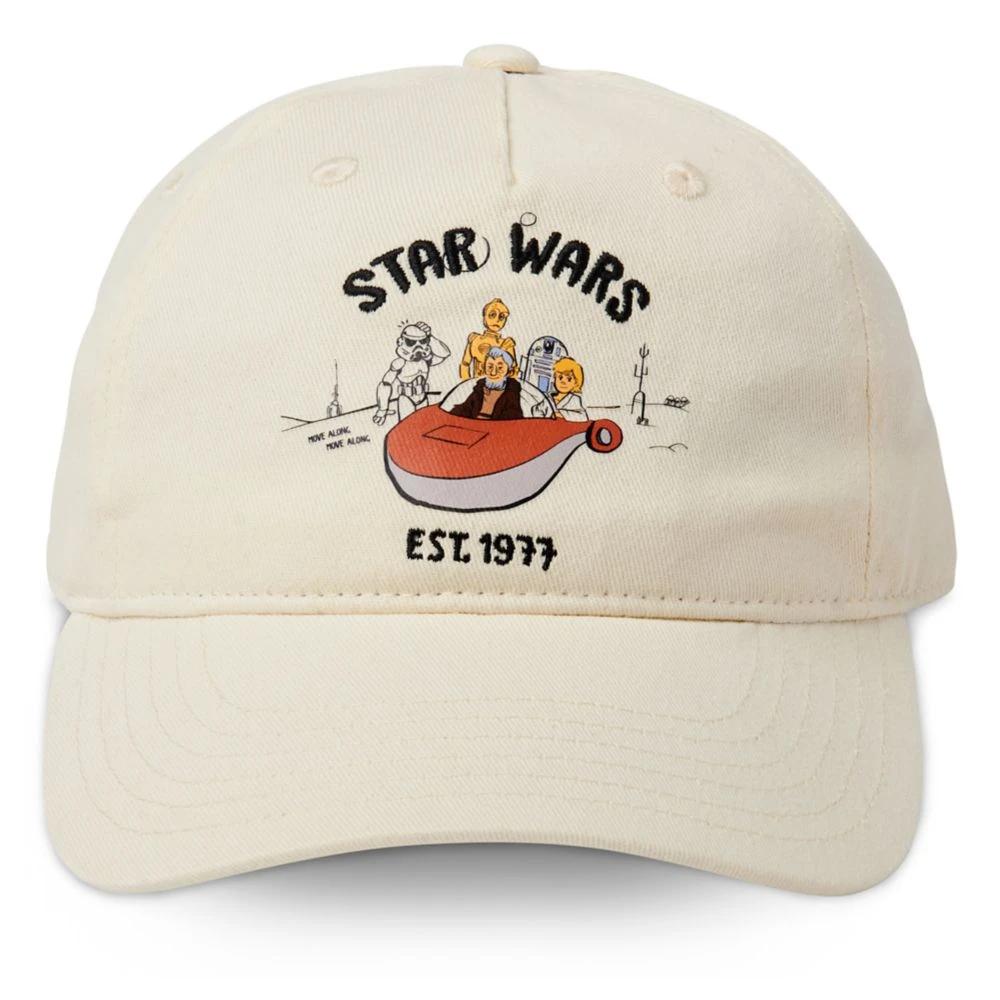 ”Move along. Move along.” This Star Wars baseball cap celebrates the scene in Episode IV: A New Hope when Obi-Wan Kenobi performs a sweet Jedi mind trick on a Stormtrooper on the way to the Mos Eisley cantina with Luke Skywalker, C-3PO and R2-D2. Featuring stylized screen art and embroidered details, this hat is an instant, and very handsome, fan favorite that is sure to accentuate your own ”cap-tivating” powers.