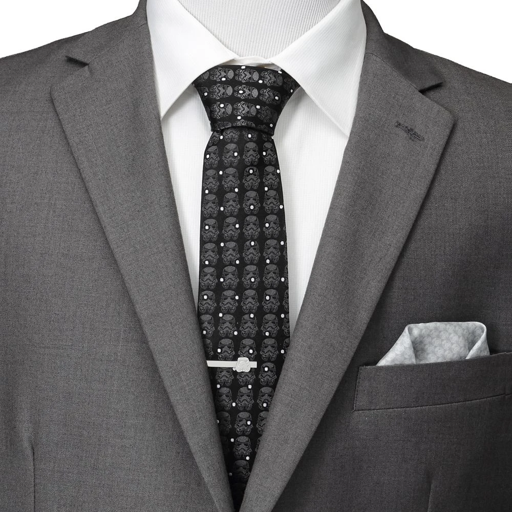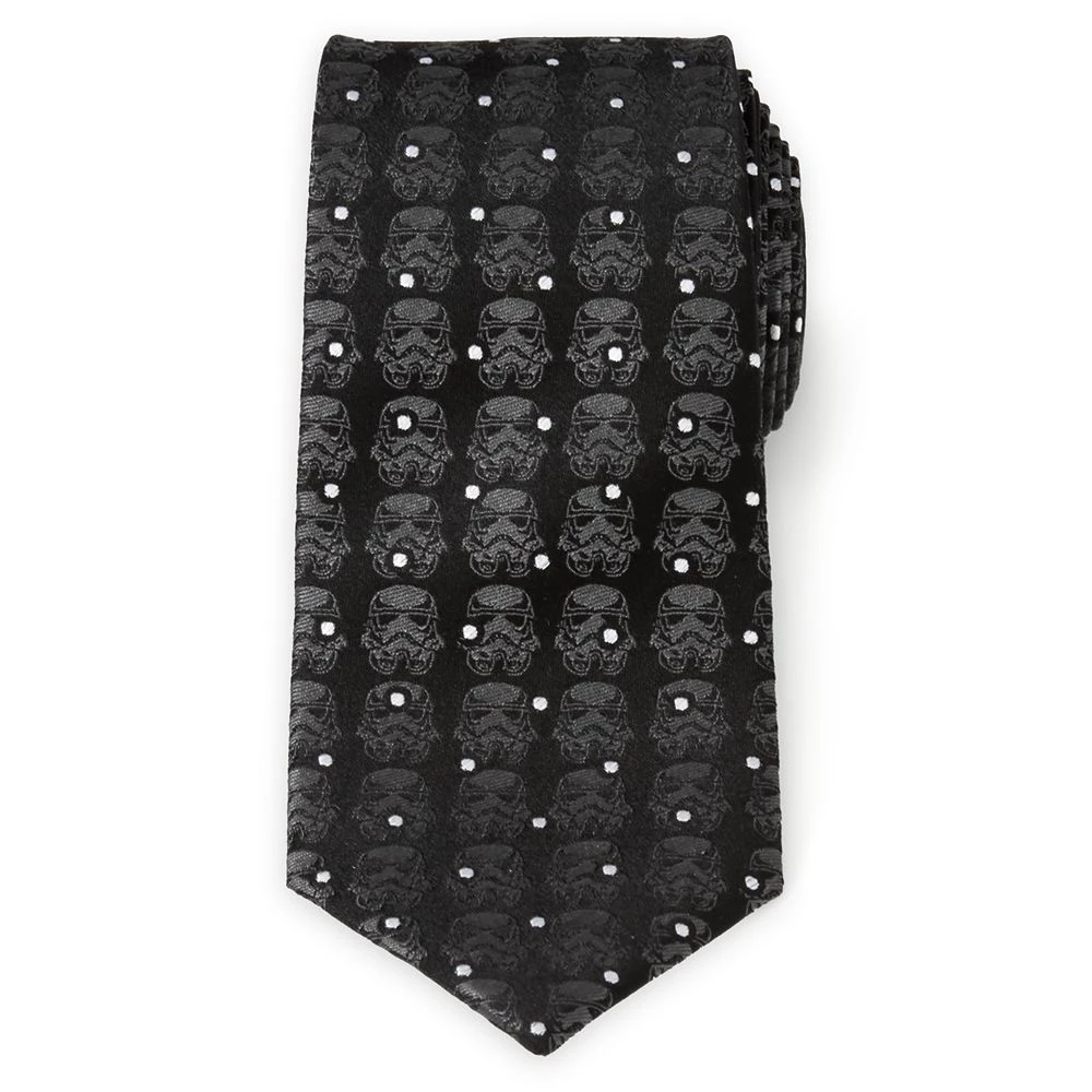 Join the ranks of the Empire’s Stormtroopers with this 100% silk Star Wars tie that features a black on black design of rows of helmets accented by silver dots.