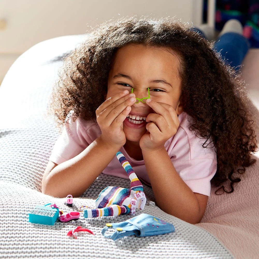 A perfect gift for your special little dreamer, this Disney ily 4EVER doll fashion pack inspired by Encanto includes a colorful outfit modeled after their favorite Madrigal. The eight-piece set includes a sweater, overall dress, necklace, tote, shoes, headband and glasses like the pair Mirabel wears. Pretty little details like butterflies, rainbows and flowers make this outfit simply enchanting.Â