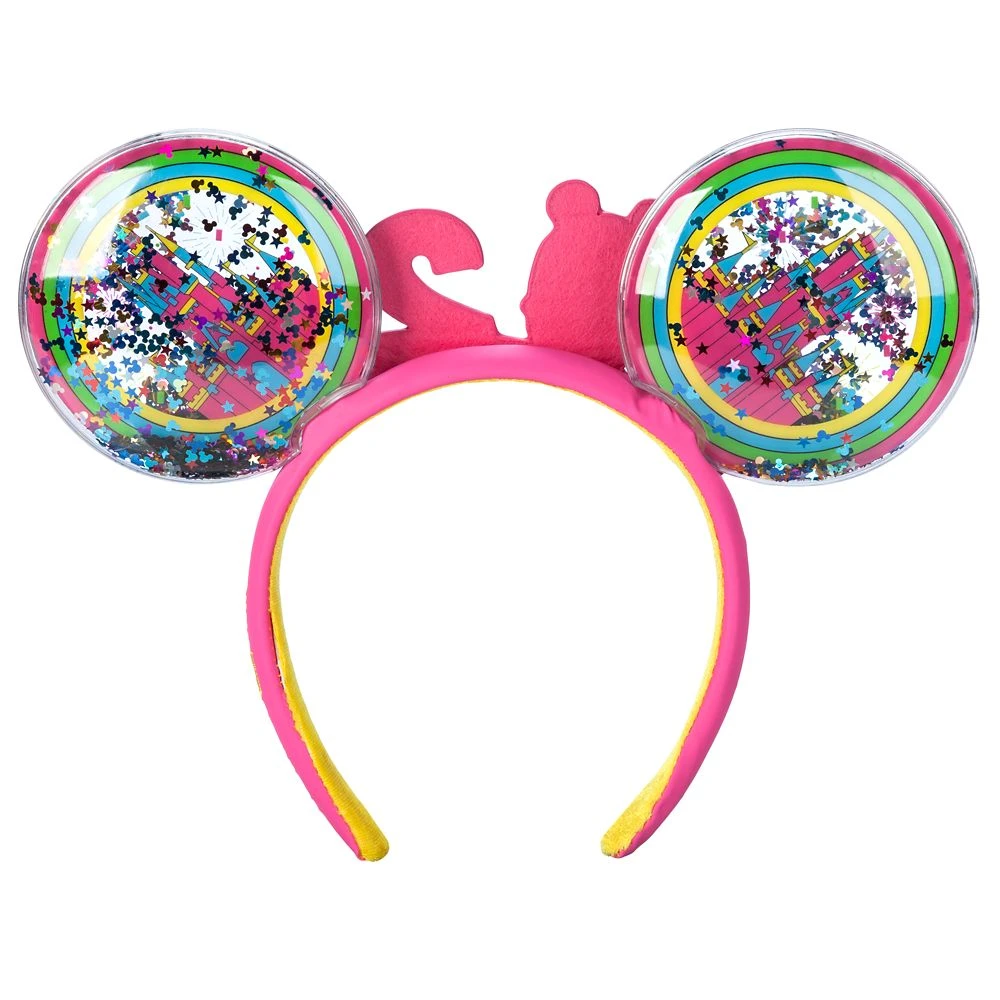 You’ll be all ears for fun times in 2024 when wearing this Mickey Mouse headband with glitter filled ears surrounding Cinderella Castle, plus embroidered Walt Disney World logo on band.